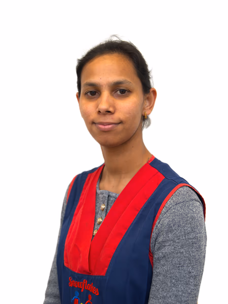 As a Nursery Practitioner, Amandeep works alongside the room leader to deliver our weekly curriculum, observe and track children's progress, and ensure every child feels safe, engaged and ready to learn. With her Level 3 Paediatric First Aid qualification and Level 3 Early Years Educator in progress, Amandeep understands how young children develop and takes genuine care in fostering their curiosity and independence. Whether it's daily feedback, supporting transitions, or joining in purposeful play, Amandeep helps create the warm, structured environment that Snowflakes families trust.